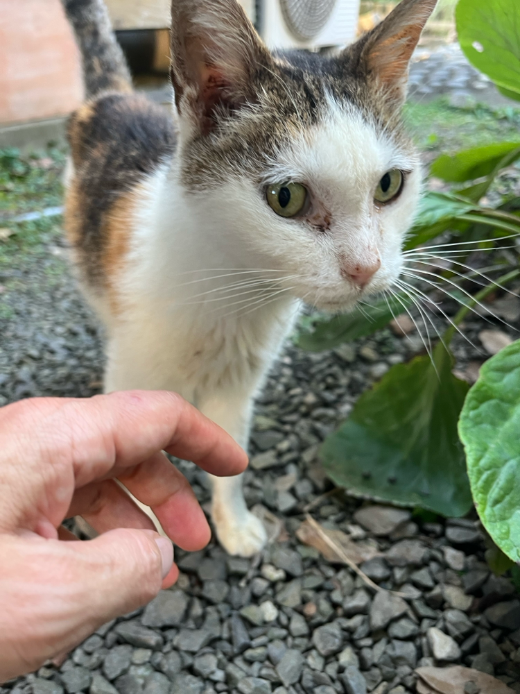 2025年10月、お店の前に現れた小さな三毛猫女子。